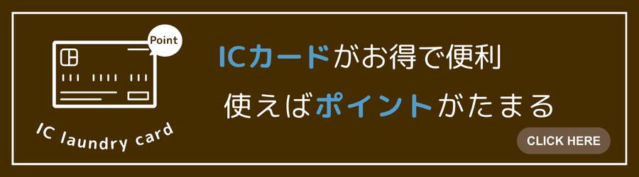 当店専用のICカードは、使えば使うほどポイントが貯まるお得なカードでお支払いもスムーズ。さらに、貯まったポイントは次回のお洗濯に利用できるので、通えば通うほどお財布にやさしい♪よく使う方も、これから通いたい方にもピッタリのICカード。ぜひご利用ください!