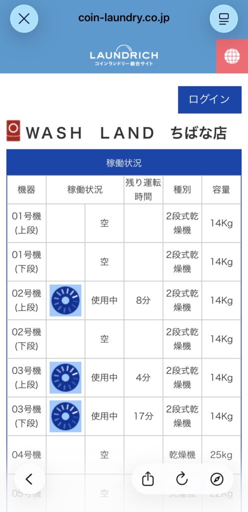 コインランドリー総合サイトにて洗濯機・乾燥機の空き状況がチェックできます。
